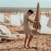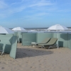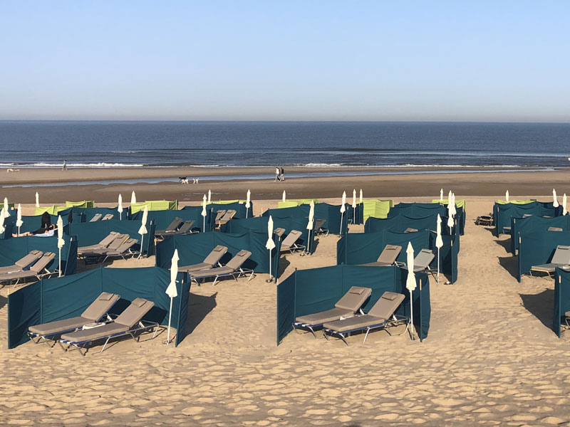 Het doek van het windscherm moet minstens 1m35 hoog zijn zodat het met het zand aansluit en toch nog hoog genoeg is. Enkel dan zijn uw klanten beschut tegen wind en opwaaiend zand en genieten ze nog van voldoende privacy.